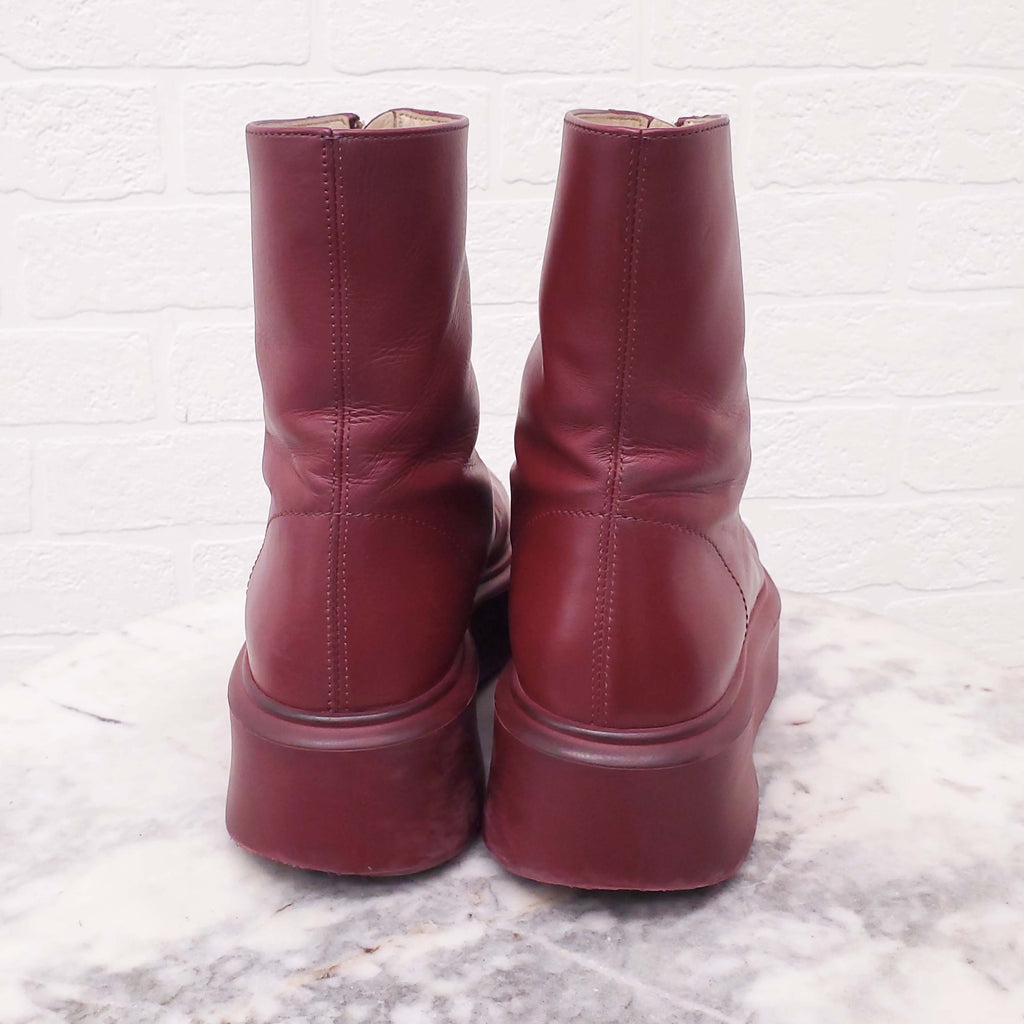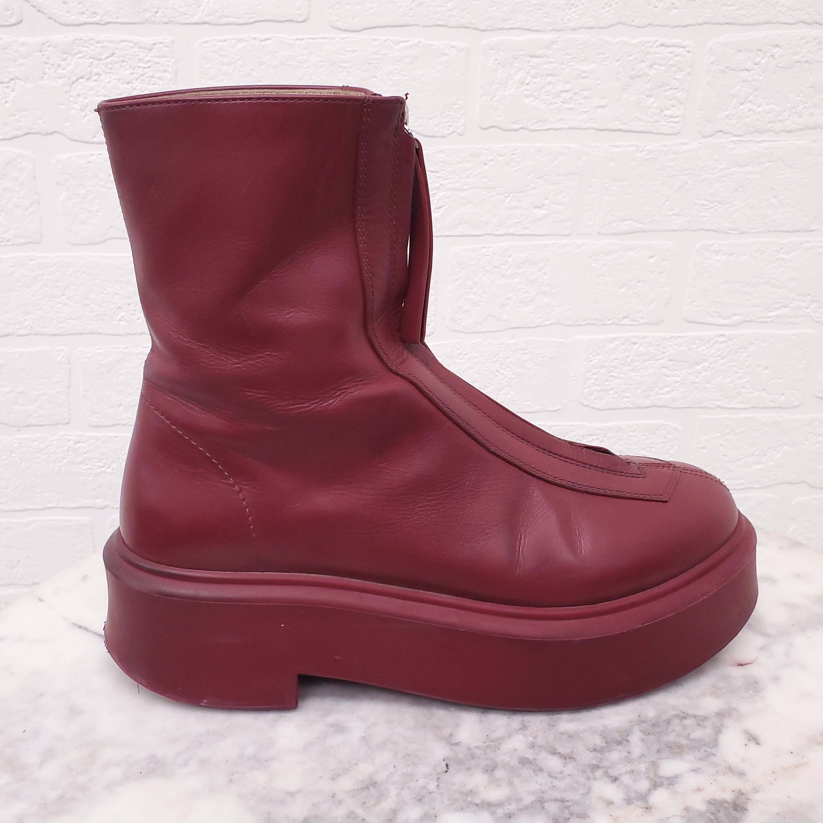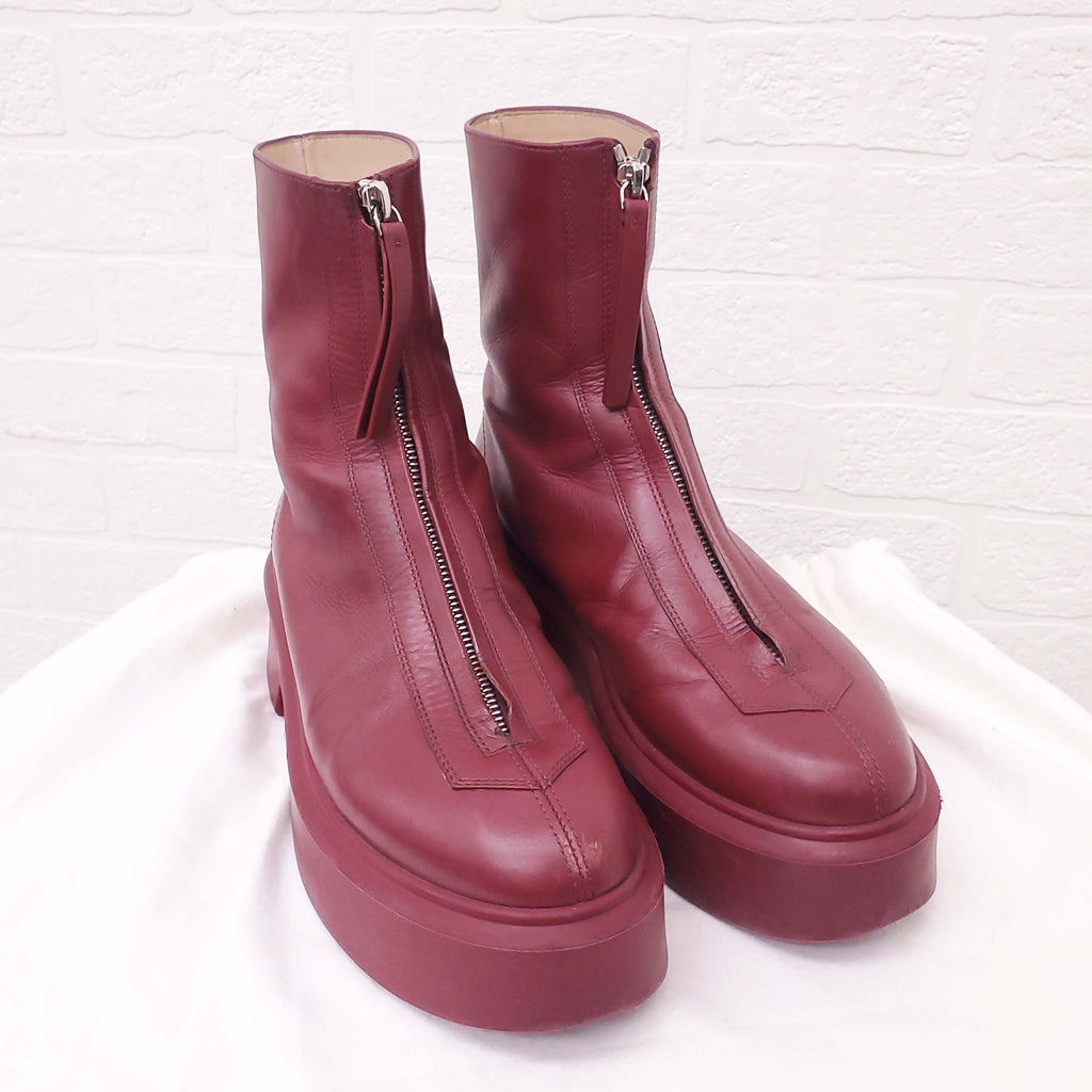THE ROW RED LEATHER 'ZIPPED' BOOTS - SIZE 37