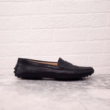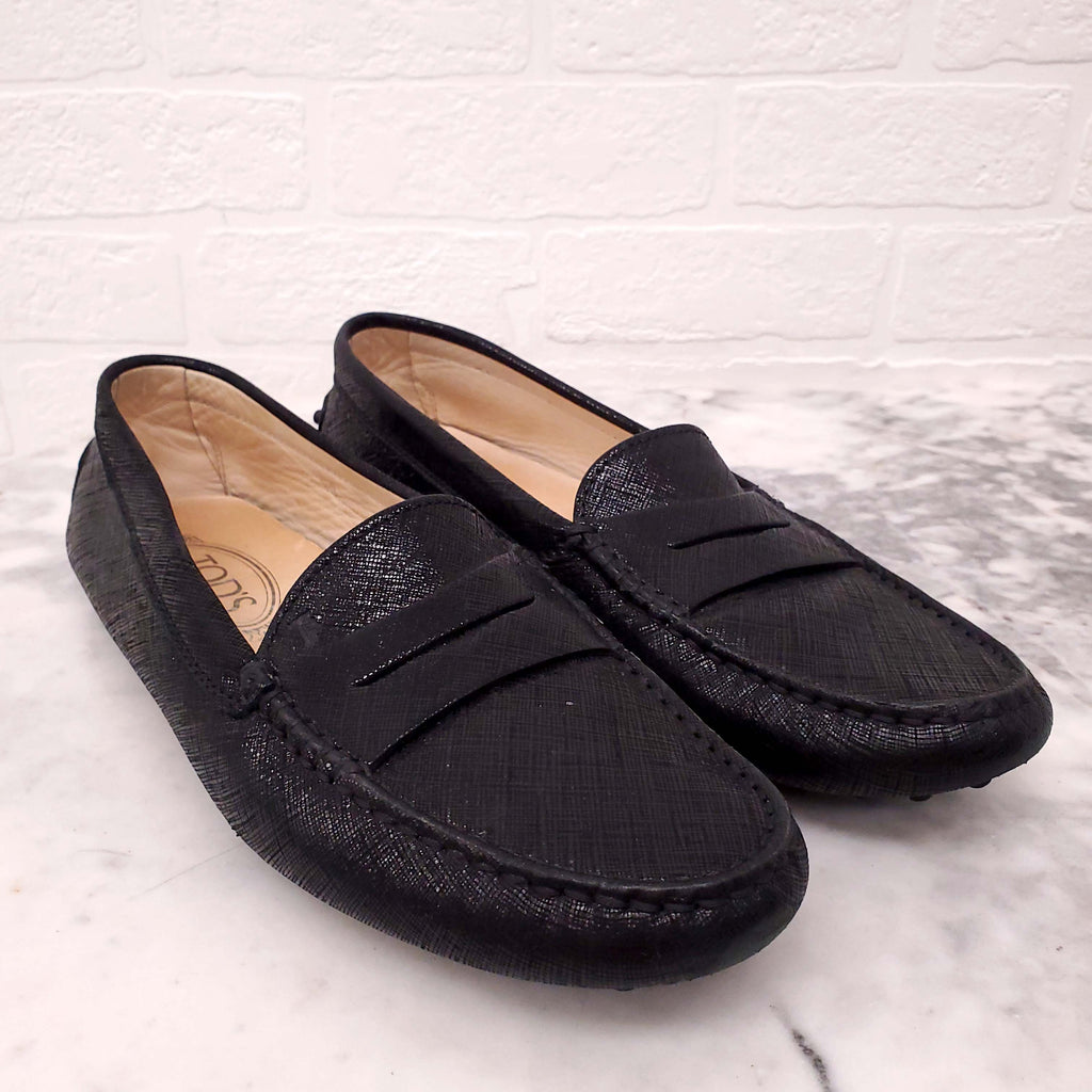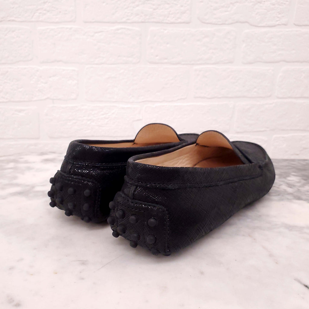 TODS BLACK LEATHER SHIMMER LOAFERS - SIZE 38