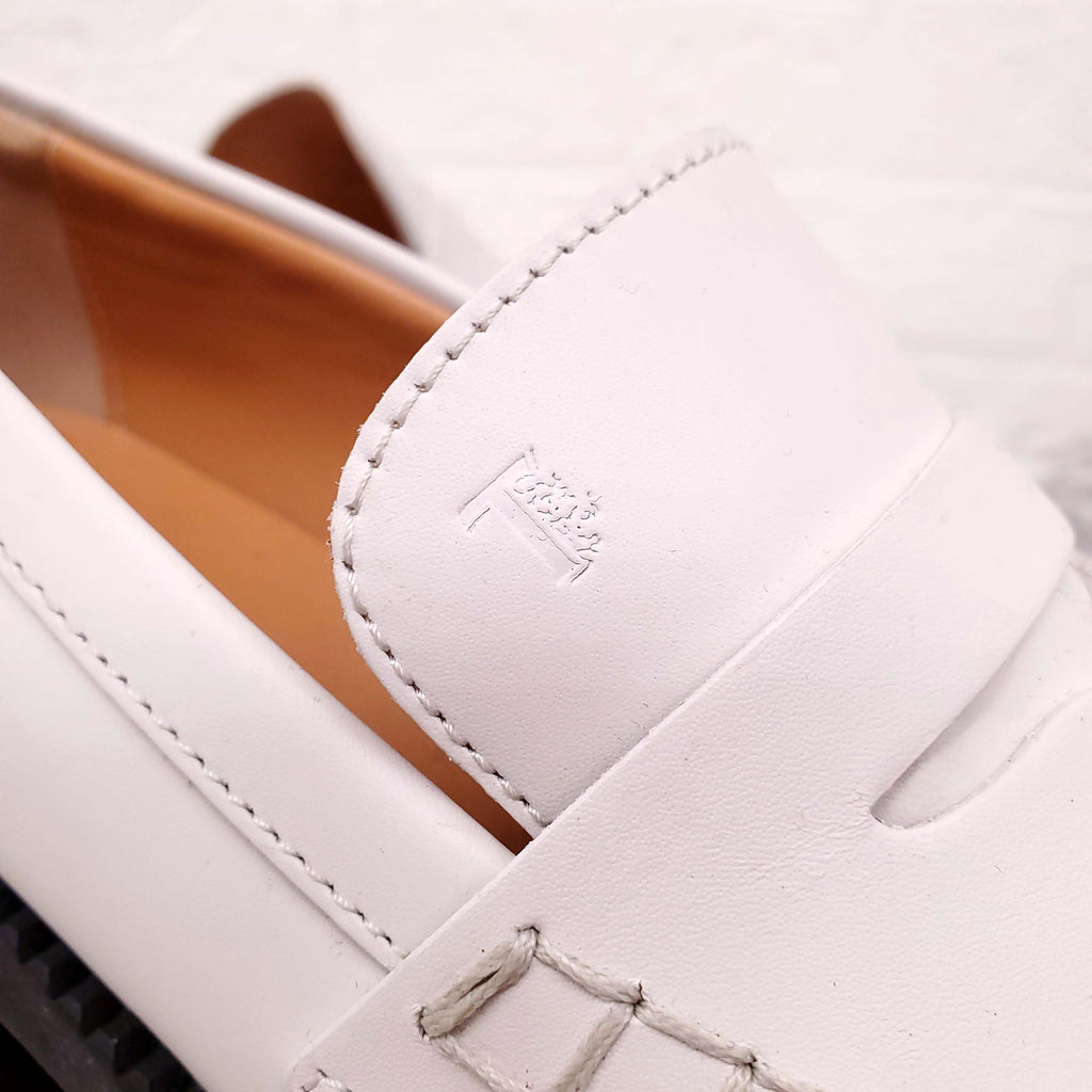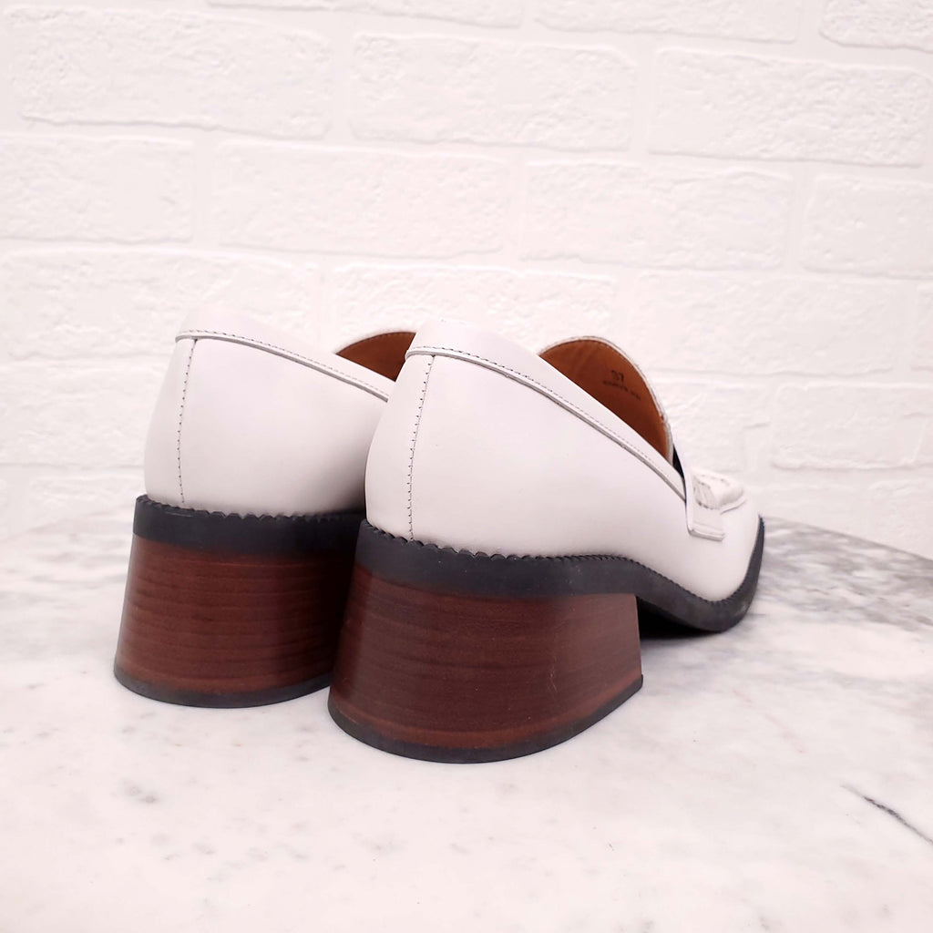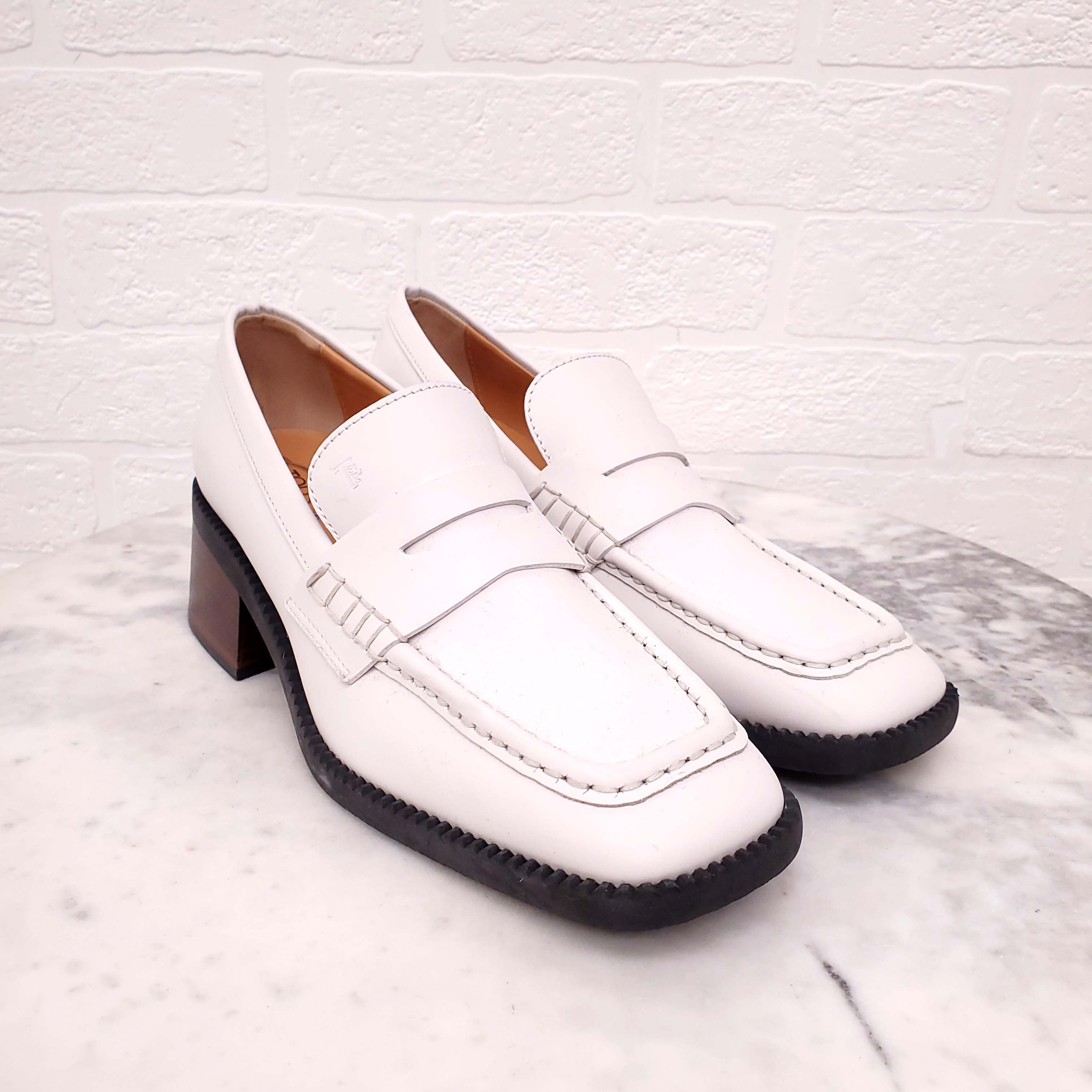 TODS WHITE BLOCK HEELS LOAFERS - SIZE 37