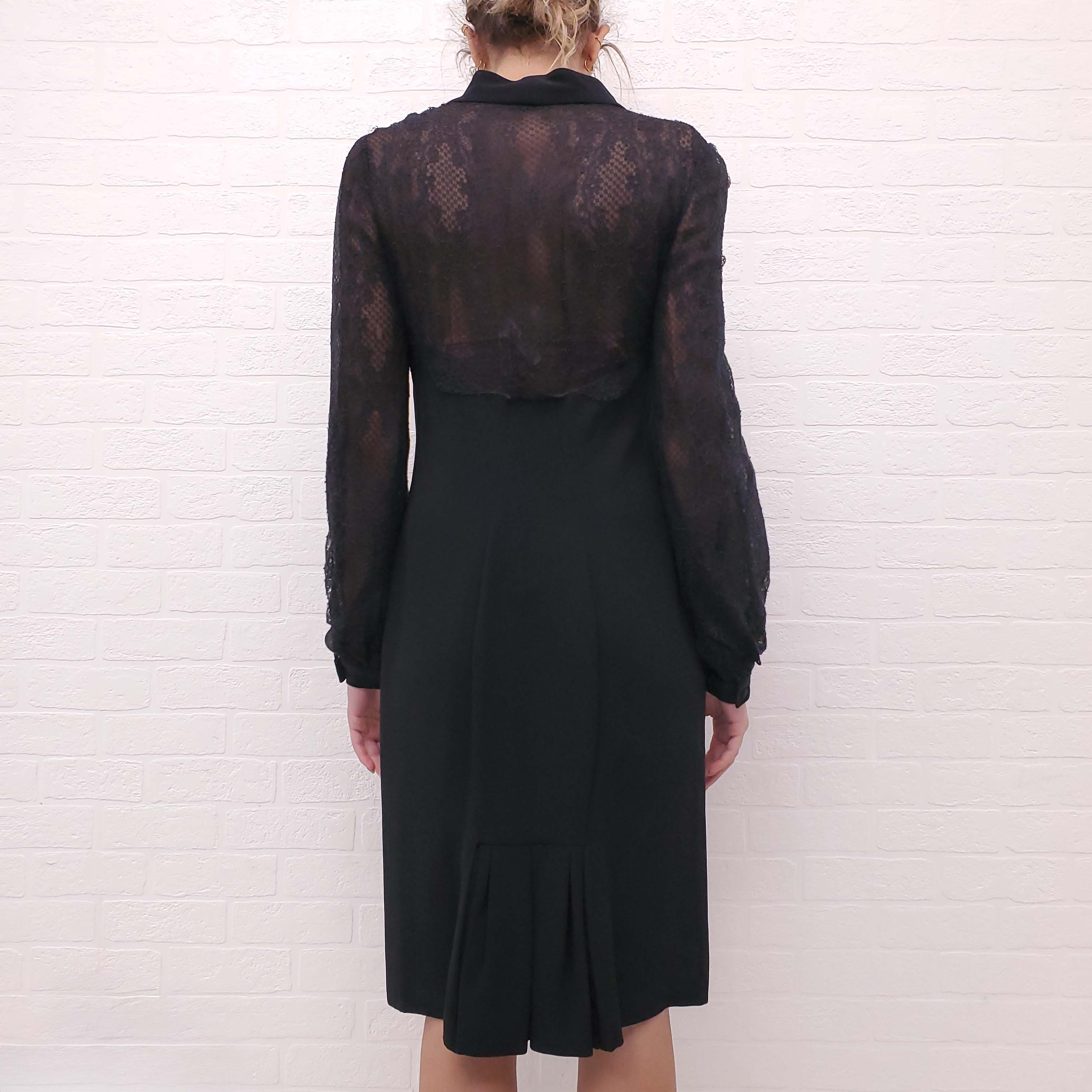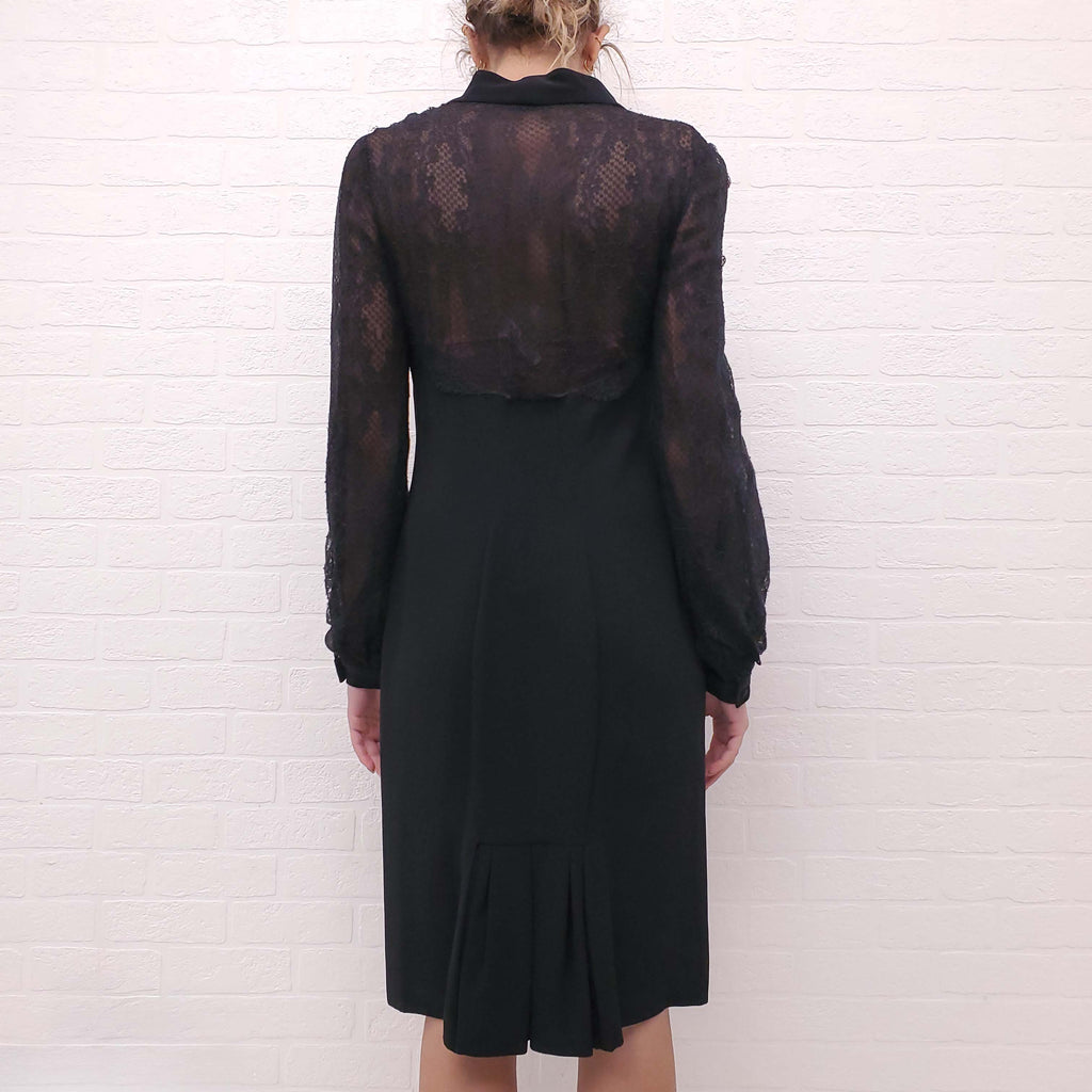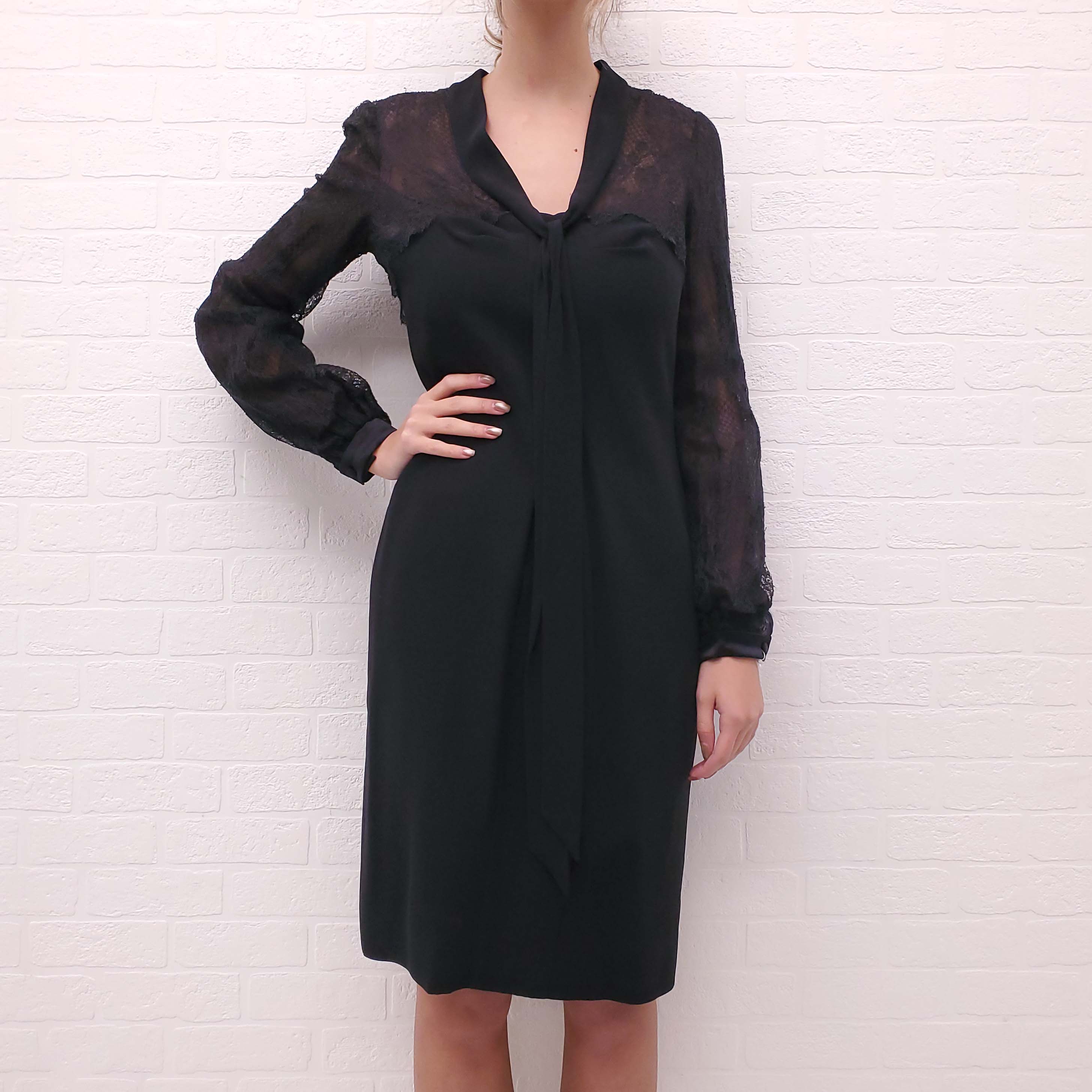 VALENTINO BLACK DRESS WITH LACE AND TIE DETAIL - SIZE 8