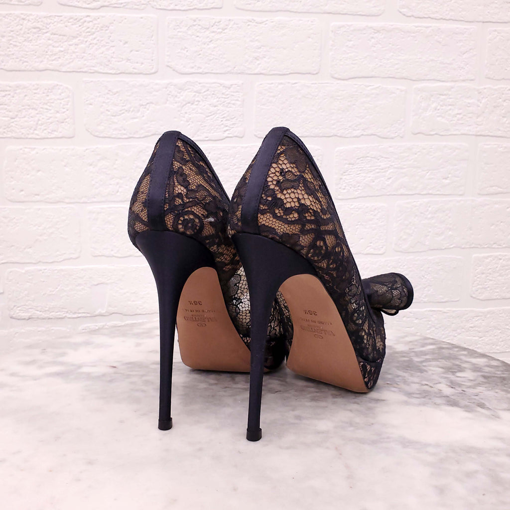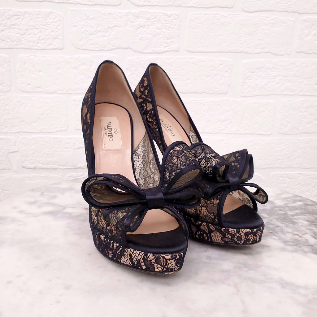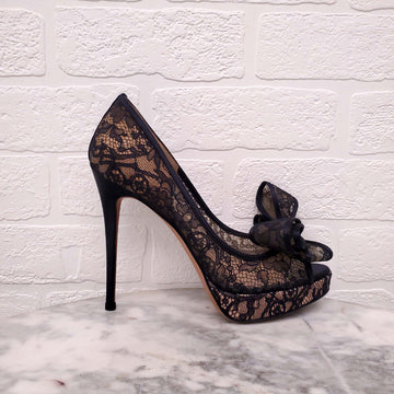 VALENTINO BLACK LACE BOW HEELS - SIZE 36.5