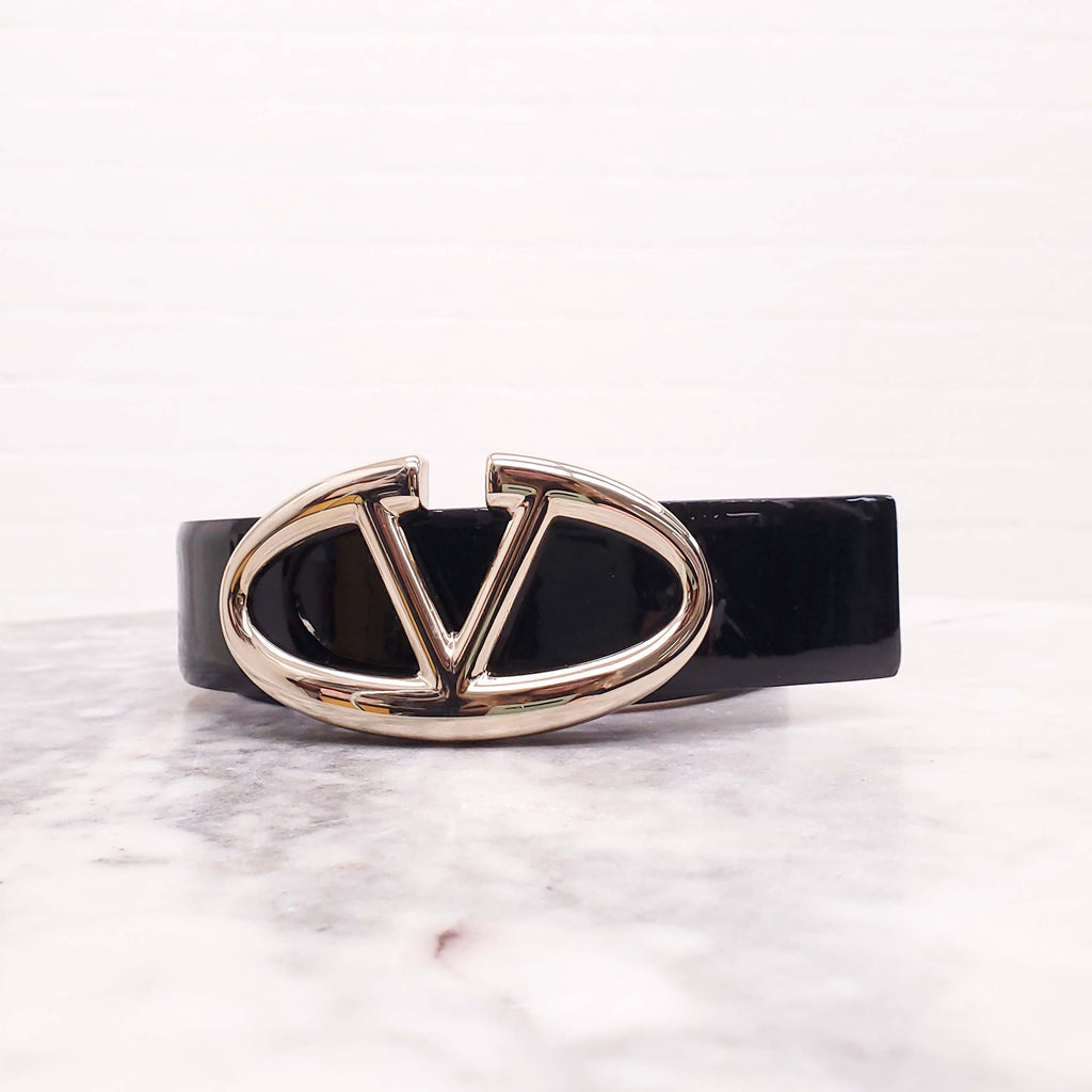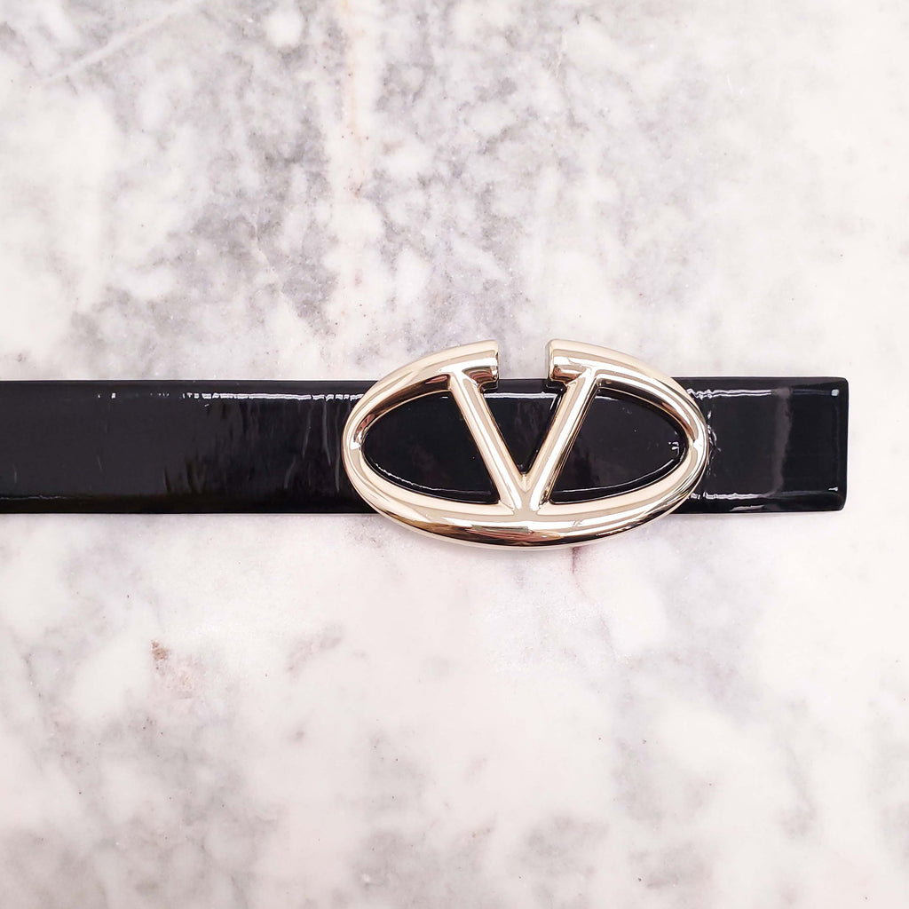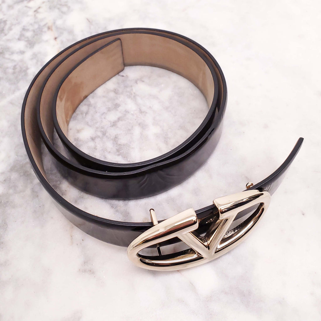 VALENTINO BLACK PATENT LOGO BELT - SIZE 80