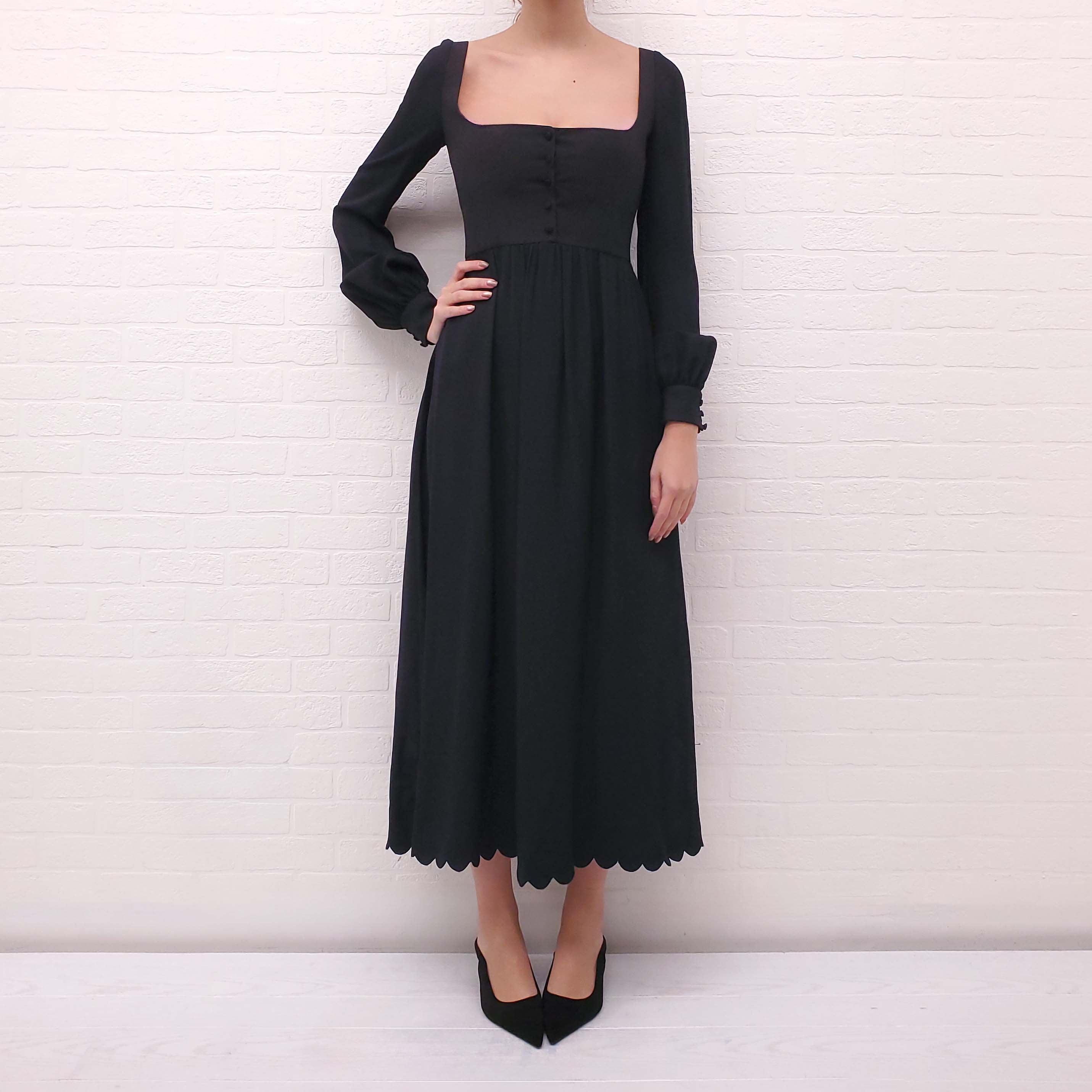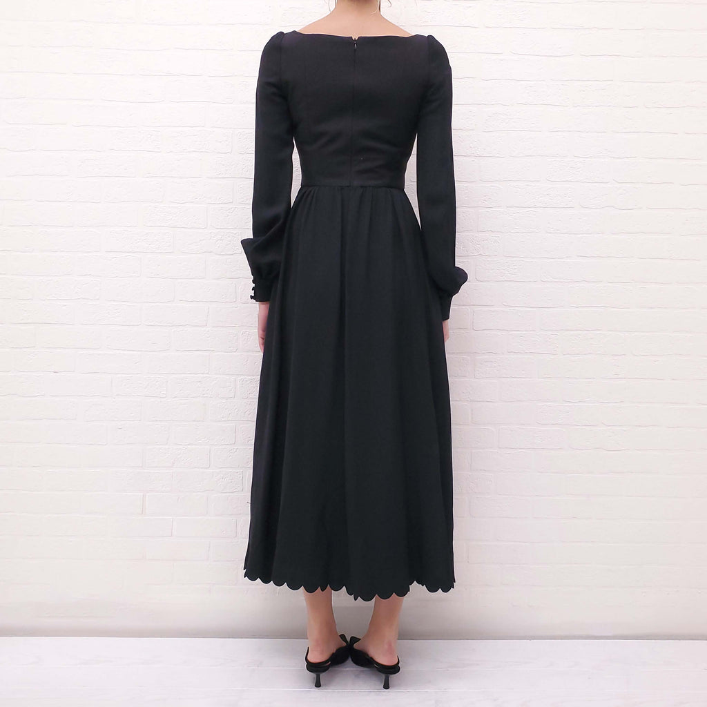 VALENTINO BLACK SCALLOPED CREPE MIDI DRESS - SIZE 40
