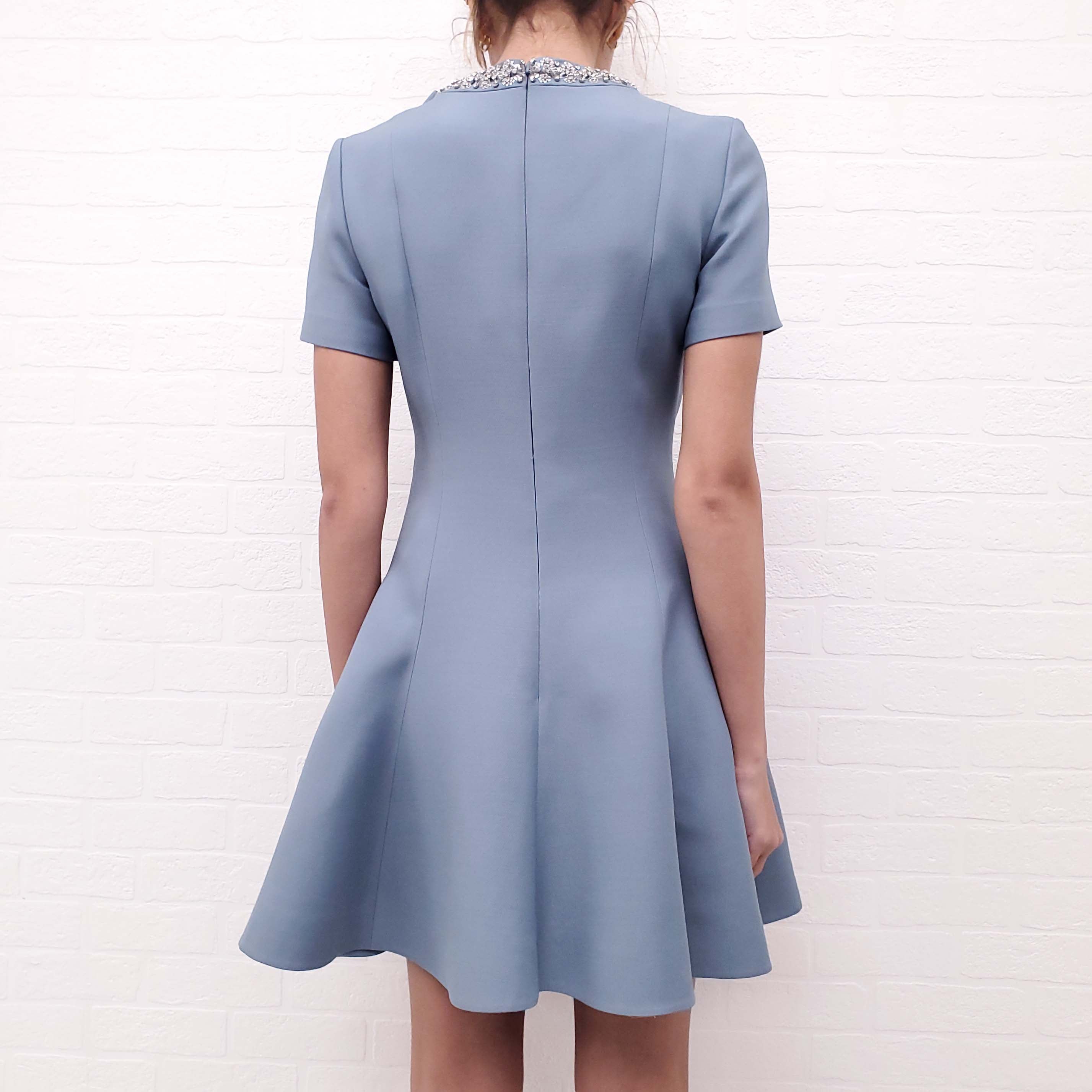 VALENTINO BLUE DRESS WITH RHINESTONES AND BOW - SIZE 40