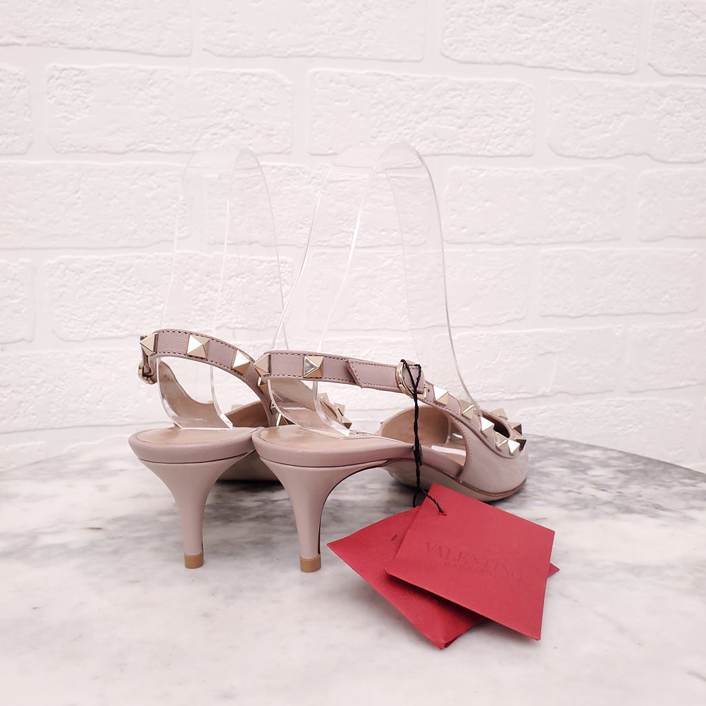 VALENTINO BLUSH PATENT ROCKSTUD SLINGBACK KITTEN HEELS - SIZE 36