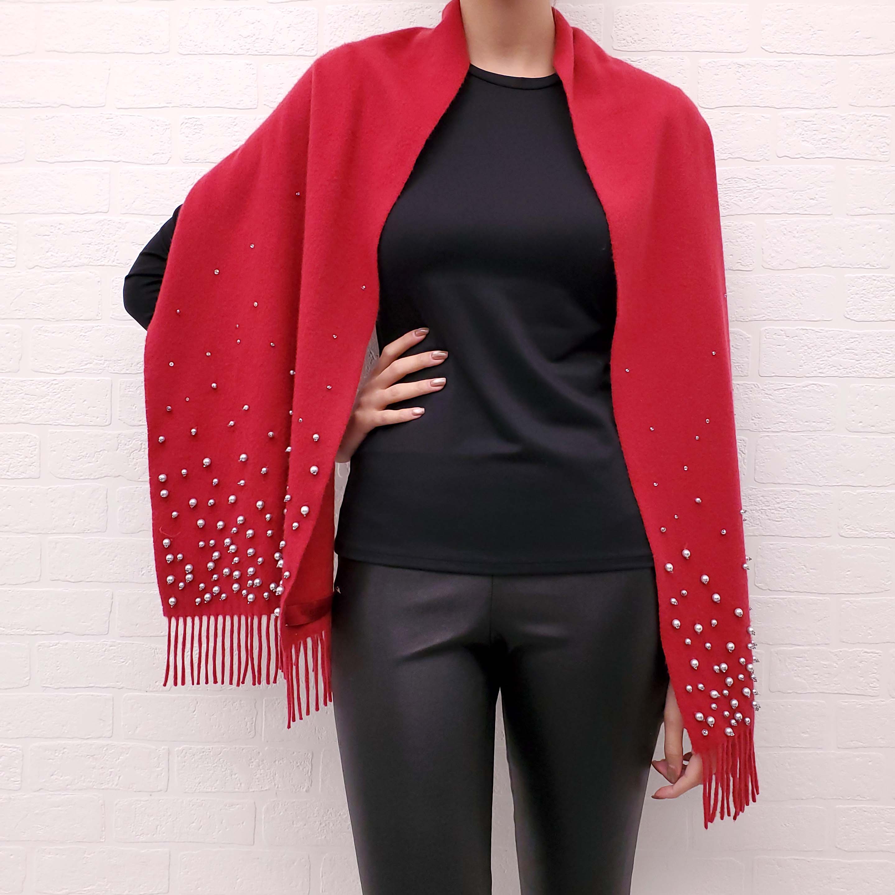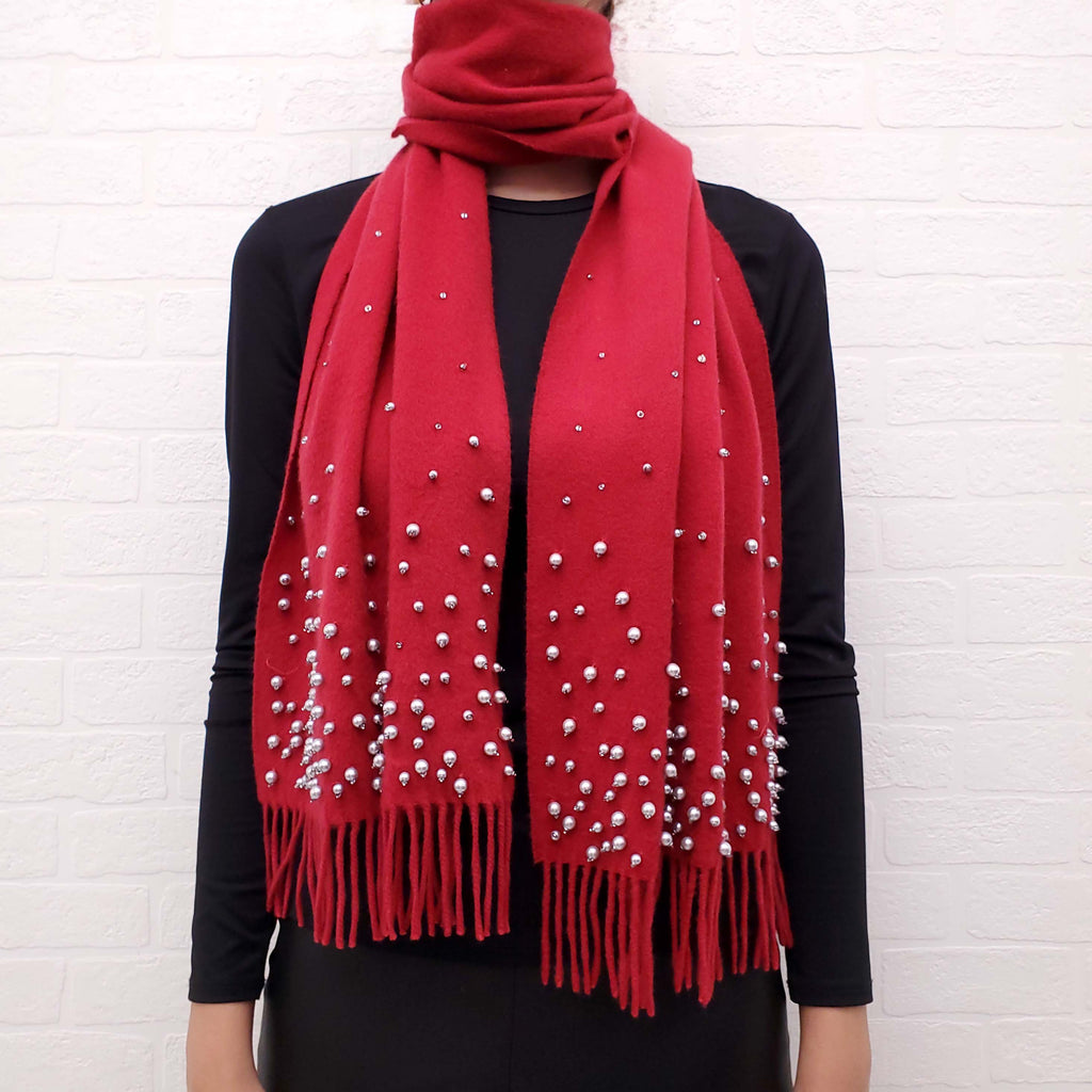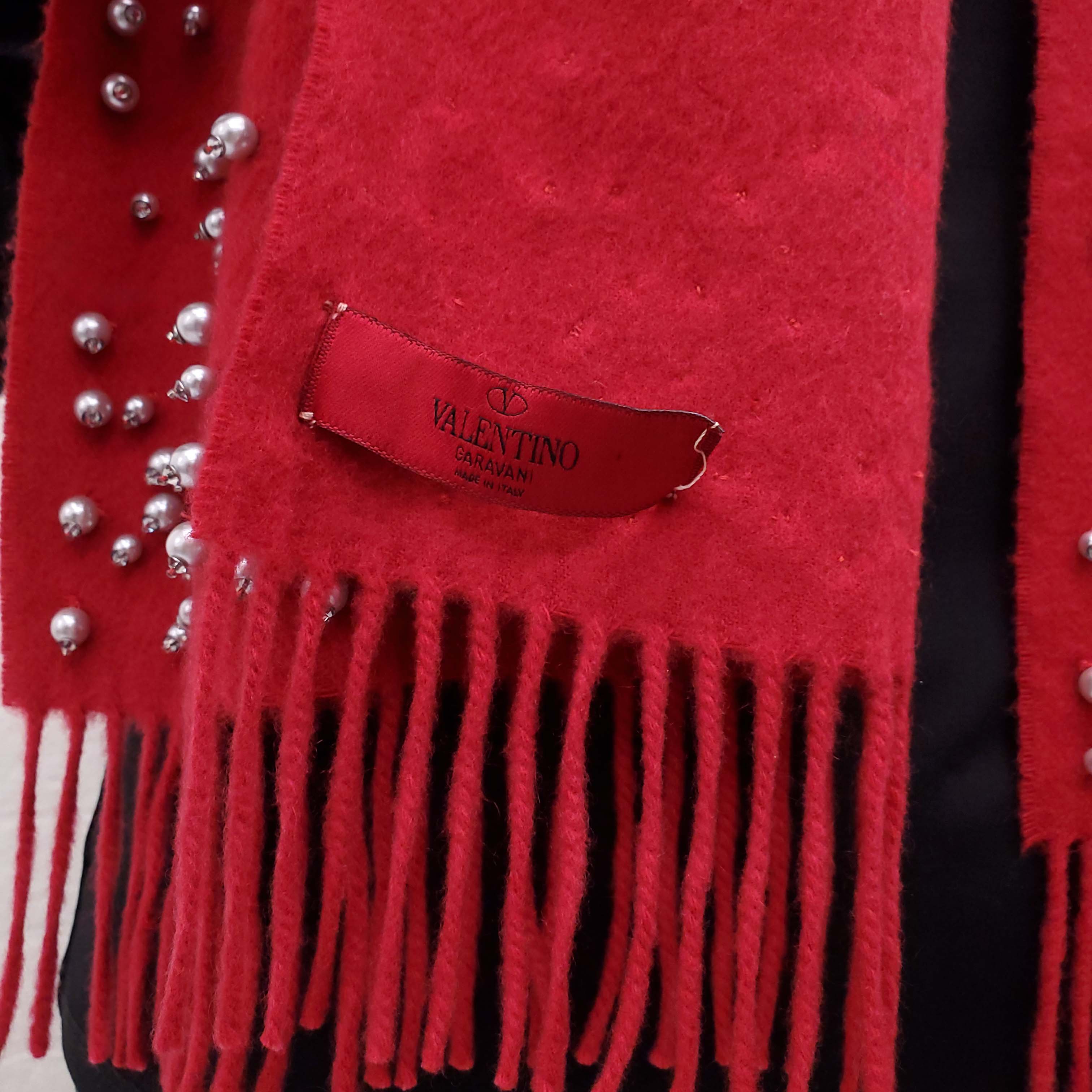 VALENTINO RED SCARF WITH PEARLS