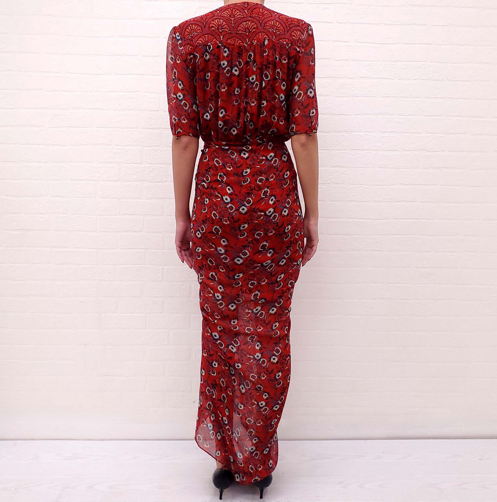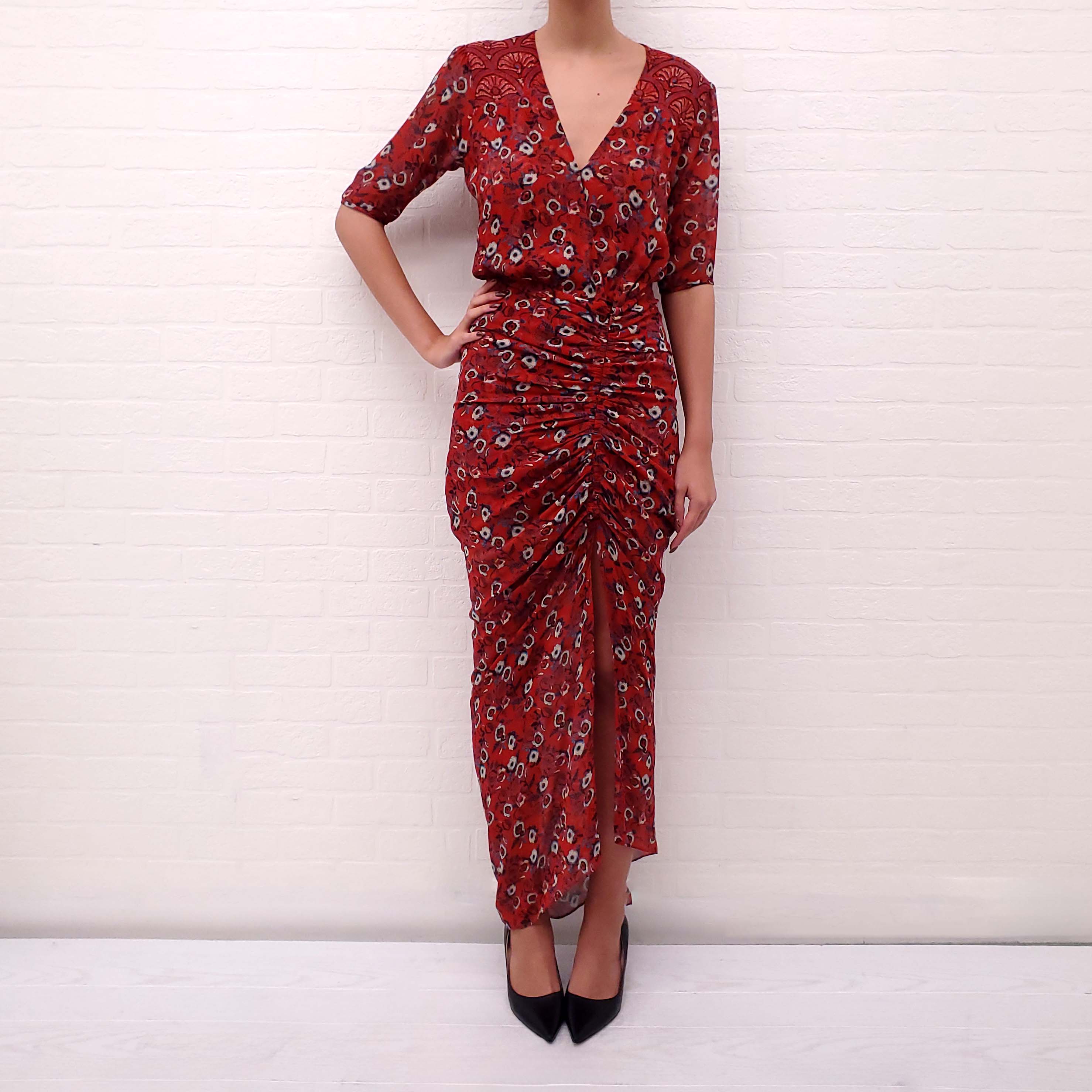 VERONICA BEARD RED ROUCHED PATTERNED DRESS - SIZE 4