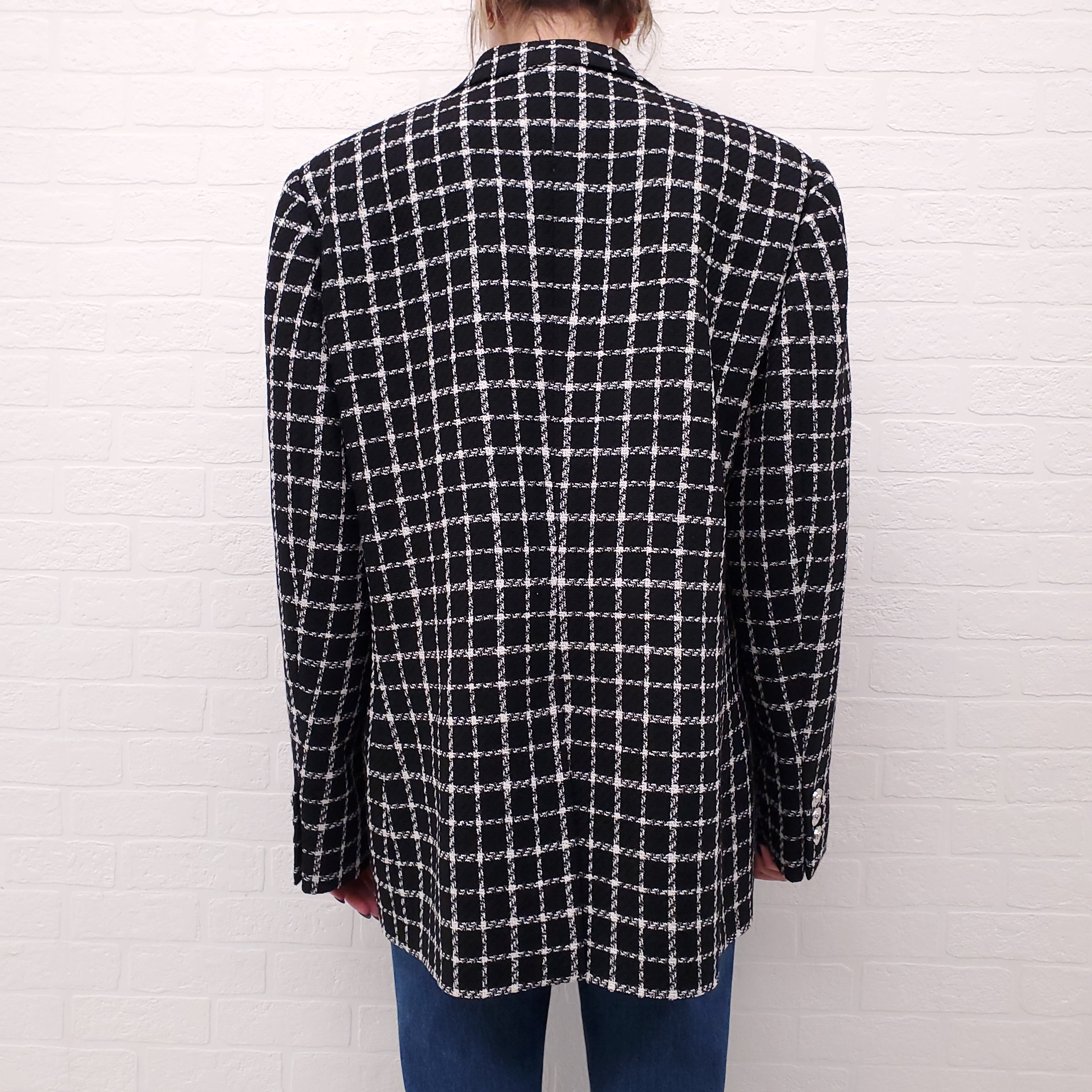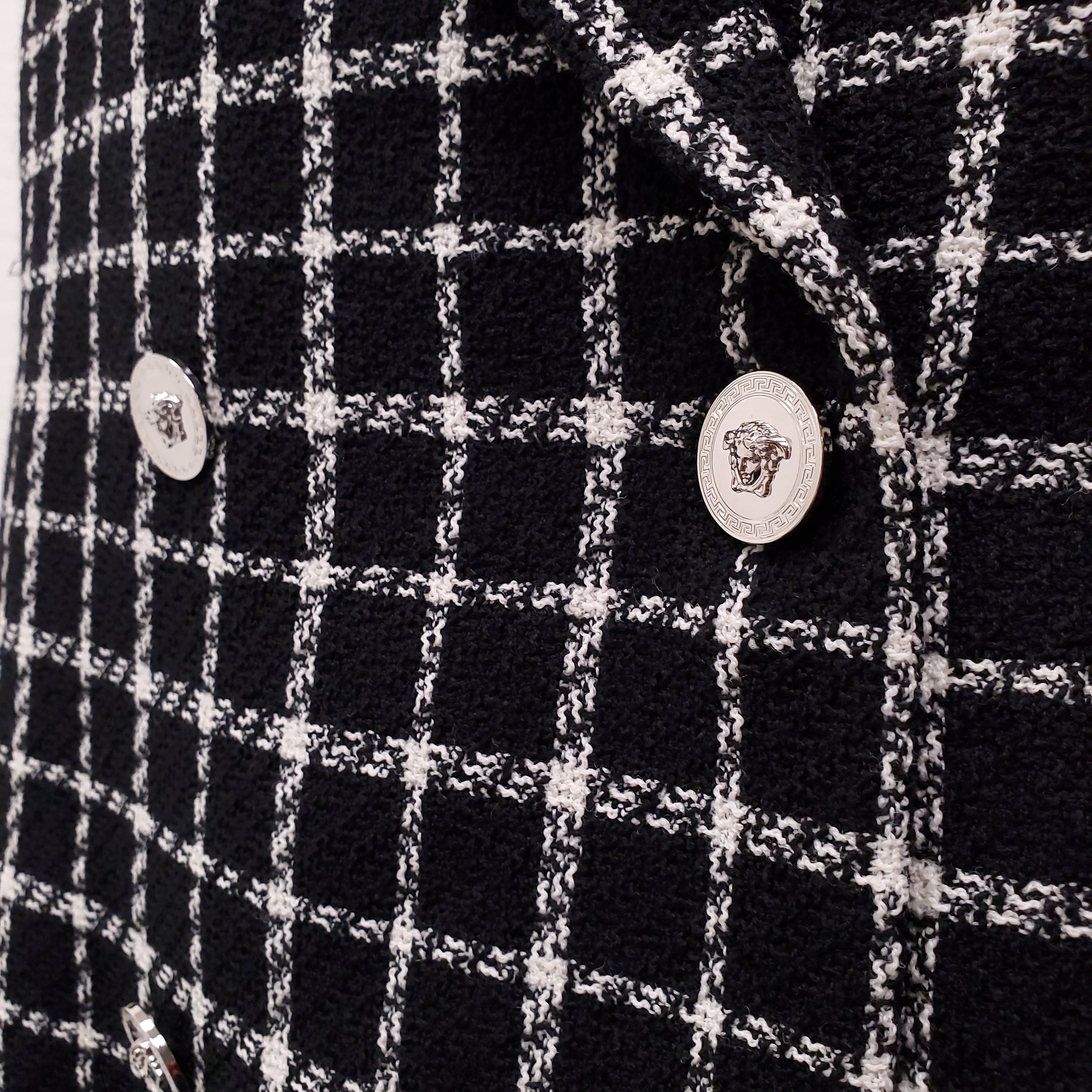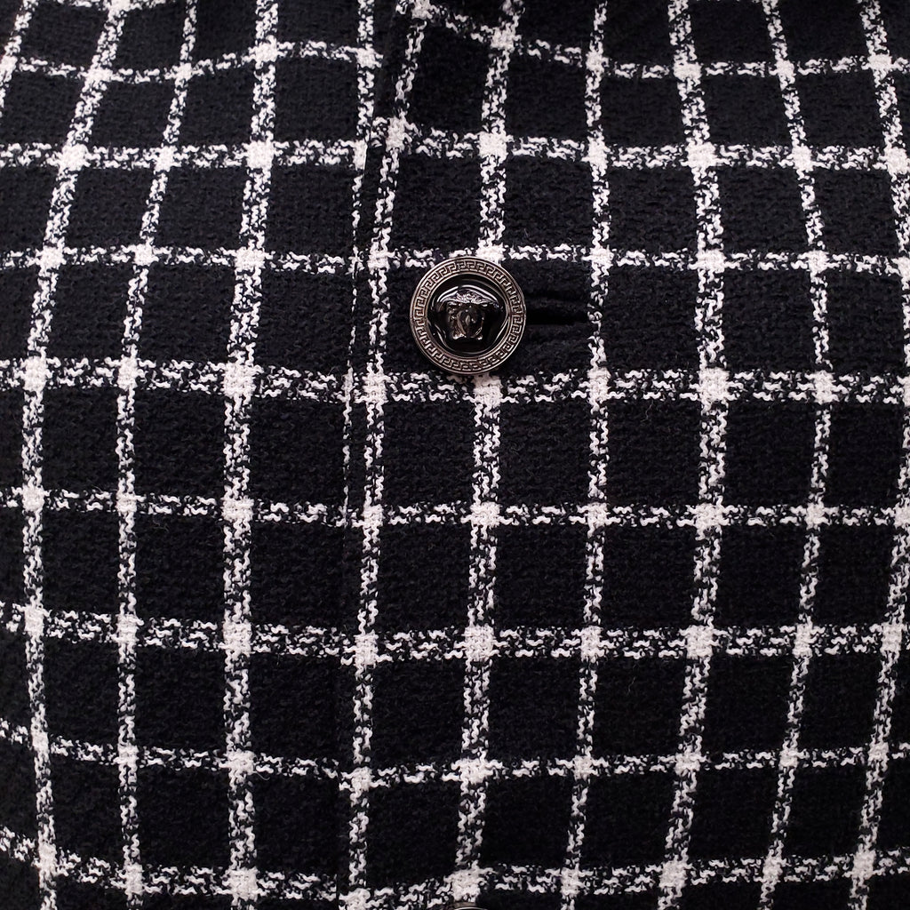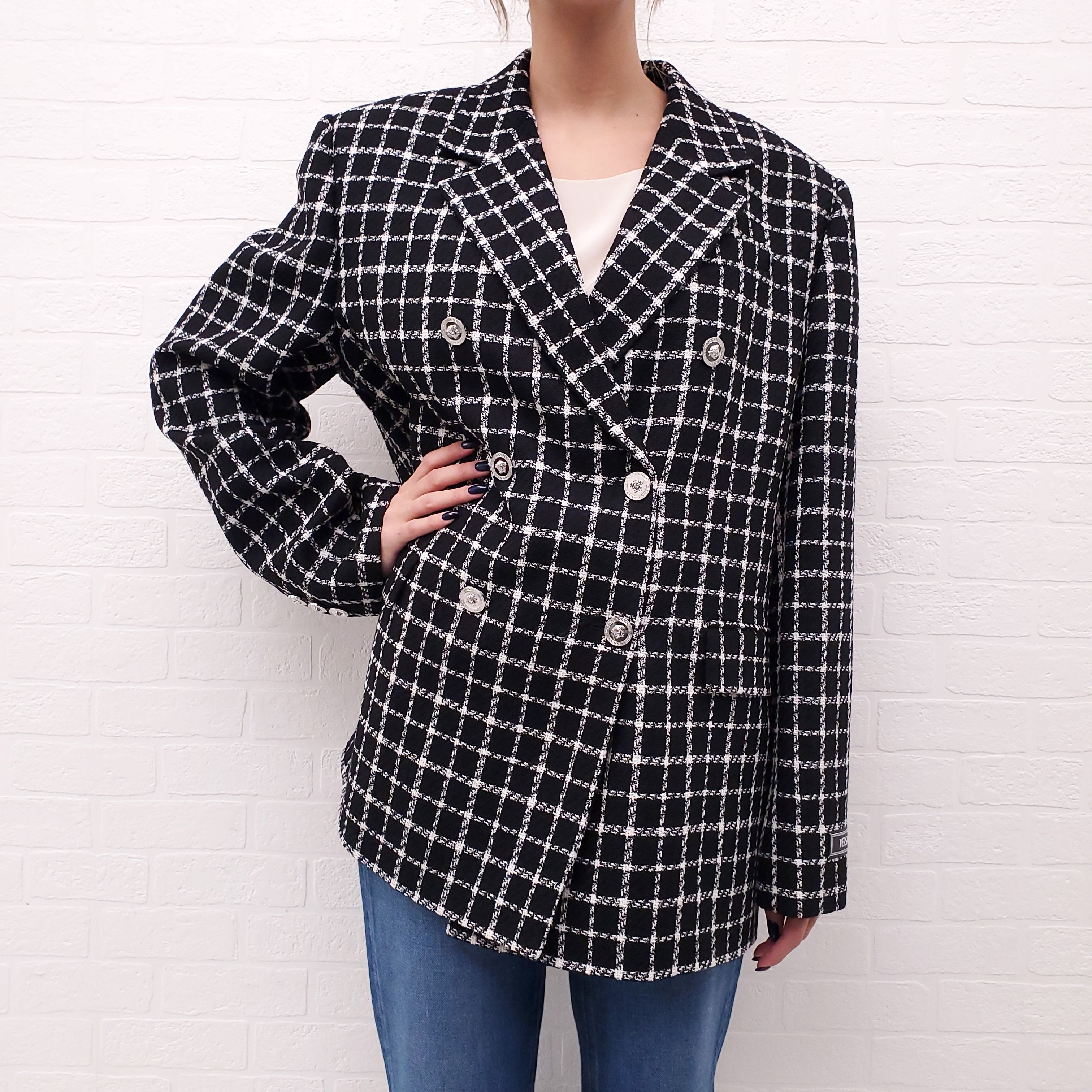 VERSACE BLACK AND WHITE TWEED DOUBLE BREASTED BLAZER WITH MEDUSA BUTTONS - SIZE 50