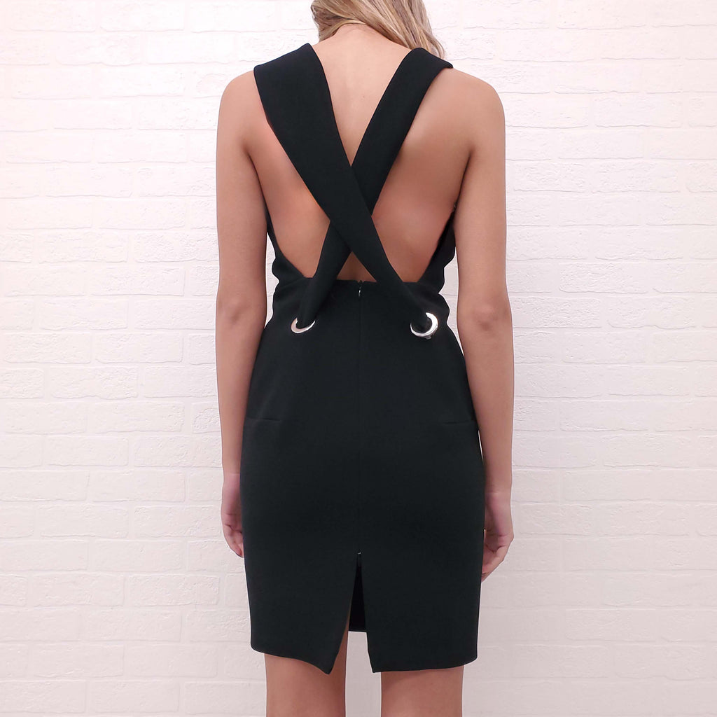 VICTORIA BECKHAM BLACK FITTED DRESS WITH CRISS CROSS BACK - SIZE 4