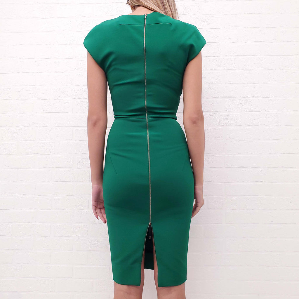 VICTORIA BECKHAM GREEN FITTED DRESS - SIZE 4